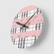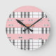 Relógio de parede preto-e-rosa com Xadrez Chic mod
