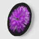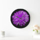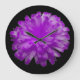 Este relógio maravilhoso mostra uma fotografia de uma flor de marigold que foi manipulada para criar uma bela flor com pétalas roxas espantosas. O fundo é preto para mostrar a beleza da flor ao máximo.
