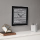 Um relógio de parede quadrado brilhante e arrojado, com um padrão ziguezague de trilhos negros e brancos.