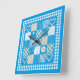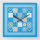 Um Relógio de Parede Quadrado, com um padrão de corações e círculos Faux Cadeias Daisy misturadas com padrões Daisy Daisy, Bolinhas e Check Gingham; da coleção Posh & Painterly 'Daisy Chain'.