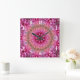 Relógio de Parede Quadrado com Design de Flor Rosa Mandala