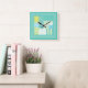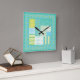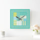 Um relógio de parede quadrado bonito, com um padrão falso de narcisos ouros na turquesa, agrupados com bolinhas correspondentes, marque martelos e listras, da coleção Posh & Painterly 'Primavera Sunshine'.