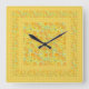 Um relógio de parede quadrado chic, com um padrão de daffodils ouro e coordenação de gingham, de um design de aquarela pintado à mão por Judy Adamson.