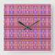 Relógio de Parede Quadrada de Padrão de Xadrez Curvy por Kristie Hubler, padrão de design de 42 pol x 36 pol, com flores, linhas de xadrez, espirais, ondas, espirais, curvas S e pontos. Muito feminina. É sobre crescimento, florescência, criação, poder