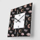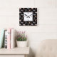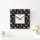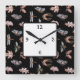 Relógio de parede com impressões da Natureza. Para sala de estar, quarto ou berçário. Relógio de parede quadrado com pinha, bolota, folha de bordo, folha de carvalho, folha de ginkgo, abelha, libélula e borboleta. Principalmente cobre metálico sobre preto.