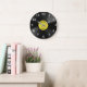 Registro de vinilo amarelo no relógio de parede redonda