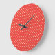 Um relógio de parede chic com um padrão de bolinhas brancas em um fundo vermelho brilhante. (Coordena-se com a coleção floral laranja, Orange Fizz.)