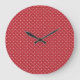 Um relógio de parede redondo, com um padrão branco no Rosa vermelho parecido com tricô. Parte da coleção Posh & Painterly 'Hearts & Rosa, este padrão irá ajustado todos os tamanhos do relógio.