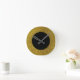 Adicione um toque de brilho ao decor de sua casa com este relógio de parede preto e dourado. Este relógio apresenta um centro preto com uma borda dourada falsa. Um relógio chique para aquela pessoa especial.