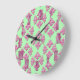 Relógio de cor damasco rosa e verde. Nada diz frescura na primavera como rosa e verde. Este relógio ficaria adorável em um quarto conservatório, café da manhã ou quarto de sol. Disponível em dois tamanhos de relógio redondo, ou um relógio quadrado. Copyright Scarebaby Design.