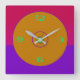 Um relógio vibrante com um fundo rosa cerise e mauve, face dourada e ponteiros verde lima. Relógio simples e atraente para aqueles que ousam ser diferentes! Disponível em formatos redondos e quadrados