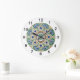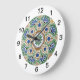 Este Charming Wall Clock apresenta um círculo de medalhões azul, verde e bronzeado. Este relógio de parede pode funcionar em qualquer sala. Os números são grandes para facilitar a leitura. Este é do Azulejo de Oregon Fay Jones Day.