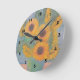 Este relógio exibe girassóis em um vaso, uma pintura de Brendan Loughlin, um artista de Guilford, Connecticut.