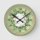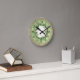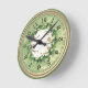 Este relógio de parede foi criado para um amante de pássaros. Ele apresenta um padrão verde e bege com uma grinalda floral e pássaros. Um relógio encantador para sua cozinha ou outra sala de sua casa. Dê este relógio como presente de aniversário ou para um presente de inauguração. Tenho certeza de que eles vão amar.