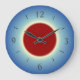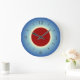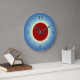 Um design simplista impressionante com um centro redondo vermelho e uma borda iluminada azul e amarela. Este relógio minimalista tem numerais romanos pretos. Disponível em formas quadradas e redondas.
