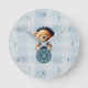 Crie um relógio de parede único para sua casa ou berçário com cores azuis, xadrez e um ursinho com charme casual. Parte da coleção de design Ursinho Jean Baby. Use o modelo para adicionar o monograma desejado.