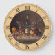 Este relógio de parede apresenta uma pintura vitágica em cores ricas do outono, com frutas de colheita e vinho, do artista Carducius Plantagenet (C.P.) Ream (1838-1917)