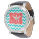Relógio De Pulso Aqua Coral Moderna Chevron Zig Zag Strik Watch