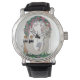 Linda noiva de arte deco está sob uma lista com assistentes.