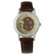 Relógio De Pulso Arte Deco Lua e Estrelas - Castanho e Dourado