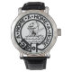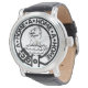 Relógio clássico com grande Casa / Gato de Crest na cara. Alça de Couro Preta.
