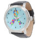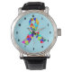 Linda fita autista cheia de quebra-cabeça de todas as cores do arco-íris. Um presente bonito de consciência autista em um rosto de relógio.