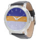 Se você se considera um contador de relógio, você sabe que um bom relógio mantém o tempo correto, ajustados bem, e parece atraente. Este relógio de alta qualidade apresenta uma banda de couro e uma face com algarismos brancos sobre faixas de azul marinho, laranja e cretino.