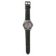 Bolhas (Rosto Clássico) Relógio de couro preto de aço inoxidável, de uso masculino. Imagens Copyright (C) Kenneth Kenji Yoncich. Todos os Direitos Reservados.