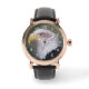 Assistentes de pulso na moda com números brancos que mostram a foto de uma águia careca com bico viciado. Selecione o seu relógio a partir de vários estilos.