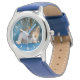 Um gatinho bonito sai de uma porta de madeira azul velha com olhos curiosos, um gato com essa casaco de cor partidária chamada calico diluído. Foto tirada na Grécia por Katho Menden. Este relógio de pulso infantil com placa de discagem é uma ideia de presente para amantes de gatos. - Se estiver a ver um design que não está disponível no seu produto desejado, por favor não hesite em contactar-me através do meu compro e eu criarei o produto com todo o gosto.