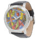 Círculos e Relógios Únicos com Pintura Mão Moderna Bauhaus Arte Geométrica em Cores Vivas Negrito