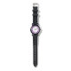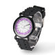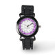 Um relógio único estilo de impressão leopardo em matizes roxas e cinzas. Personalize com seu nome. Este exemplo diz Jennifer. Desenvolvido exclusivamente pela Sarah Trett.