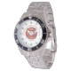 Este relógio é decorado com o logotipo da Cruz Reformada do Bombeiro da EMT.