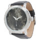 Mostra vintage para homem com bracelete preto em couro desenho v.boscher tinta cinzento