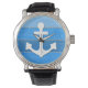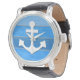 Design com temas náuticos com decoração de âncora em fundo de madeira de cinza e azul listrado. Por favor, note que isto não é feito de madeira, é um impressão gráfico de madeira.