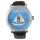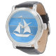 Design de temas náuticos com decoração de embarcações à vela em fundo de madeira de azul listrado e cinza. Por favor, note que isto não é feito de madeira, é um impressão gráfico de madeira.