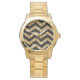 Relógio De Pulso Dourada Glitter & Black Chevron, Classic Look Desi
