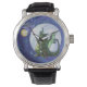 Se você ama dragões, você vai adorar esta divertida Trabalho de arte Dragon Watch pintada por Traci Van Wagoner. Esta ilustração de fantasia mostra um dragão verde segurando uma lanterna de papel amarelo à noite silenciada contra uma lua de cheio com um castelo atrás. Levar até o castelo ao fundo é uma linha de dragões carregandos. Adoro dragões, cenas noturnas, e a ideia de dragões na guarda. Dragões governam!