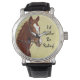 Um novo relógio de pulso equestre fantástico com uma pintura de um cavalo puro-sangue, pronto para ir com a legenda "Eu Preferencialmente Estaria Andando! Qualquer equestre amará este relógio em qualquer ocasião.