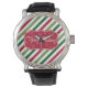 Ilustração feliz de Natal com texto e flocos de neve design em fundo listrado vermelho, branco e verde