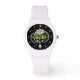 RELÓGIO DE PULSO FLOR BRANCO DE ENAMEL IMPRESSO, PÉROLAS E DIAMANTE