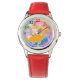 Bonita Flor de Cartoon Girly Dinossauro e nome personalizável "Kimberly" Girls Kid's Watch. Um giro cartoon dinossauro laranja Diplodocuments no campo das flores com cores coloridas do arco-íris borda e nome totalmente personalizável "Kimberly" com números coloridos de 1 a 12, relógio de pulso de dinossauro para crianças. Este lindo relógio de dinossauro giro para crianças é totalmente personalizável, adicione seu nome, textos e imagens! Um adorável presente personalizável de dinossauro com seu nome para um grande fã de dinossauros!