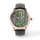 Na moda com números brancos que mostram a foto de uma floresta de coníferas, esverdeada, no noroeste do Pacífico. Selecione o seu relógio a partir de vários estilos.