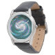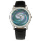 Linda pintura acrílica e tinta de uma galáxia espiral em verde escura esmeralda e roxo. Especialmente para quem ama astronomia e ficção científica. Por Alexandra Cook aka Linandara.