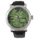 samambaias verdes e peludas da floresta do rosto deste relógio