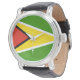 Mostre seu Orgulho Guianense com este relógio da bandeira da Guiana com a bandeira da Guiana. Resistente à água com movimento de quartzo em três mãos e disponível em vários estilos, incluindo o aço inoxidável clássico, a tira preta de couro, duas tonalidades, esportivo, rotineiro, brilho, aço inoxidável infantil e bezel ajustável de criança.
