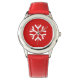 Kids Watch mostrado com uma face vermelha e uma pulseira vermelha com um impressão floco de neve feriado. Personalize este relógio ou comprar como está.