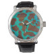 Relógio De Pulso Impressão de Vaca Castanho e Teal