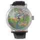 Vintage Art Nouveau Tiffany Stainted Glass Window Art Men's Accessories Watch apresenta uma bela paisagem florestal na primavera de cachoeira enosa, flores irrelevantes e árvores cerejeiras, Birch e Lotus Pond. Arte refinada com um bom senso oriental de feng-shui.