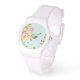 Relógio De Pulso Jardim Floral, Fundo Azul